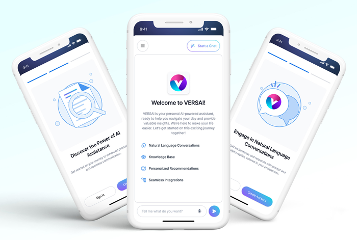 VERSAI Mobile Chat, Chatbot, AI, VUI, NLP & Machine Learning App.