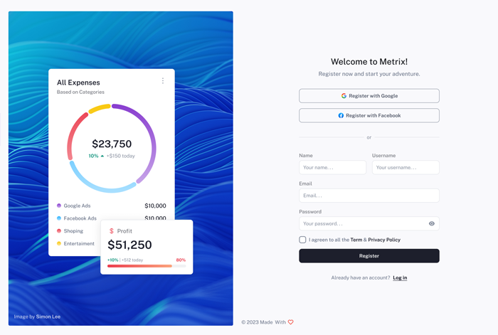 Metrix Admin Dashboard web application with a complete design system.